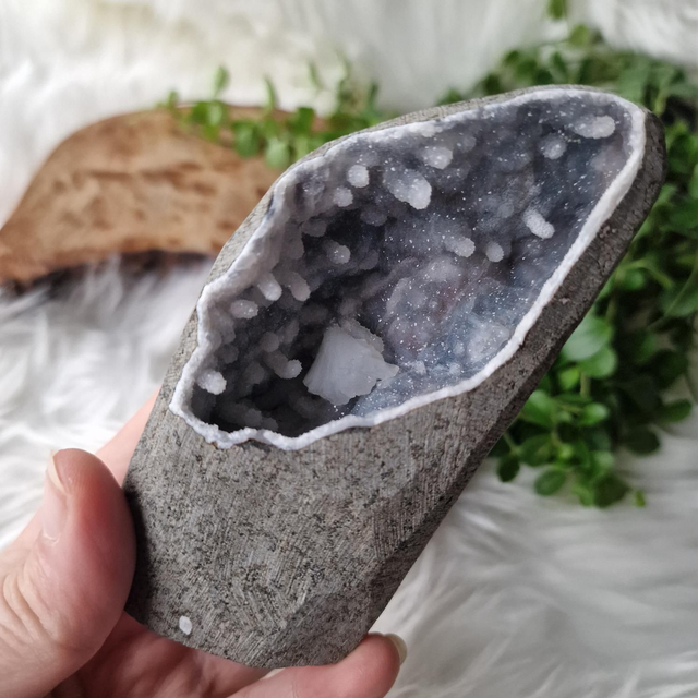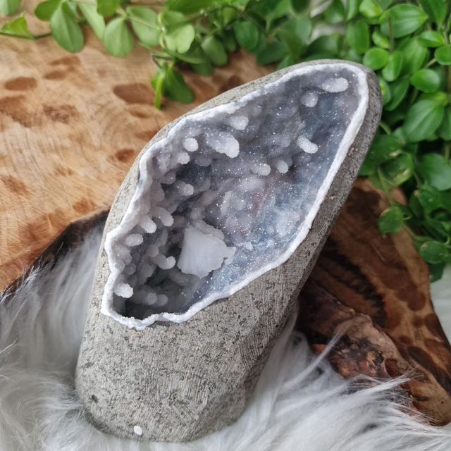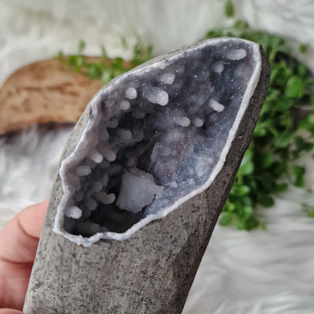 Amethyst pastel stalagmite and stilbite cut base - 437g