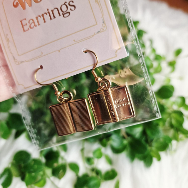 Book worm earrings